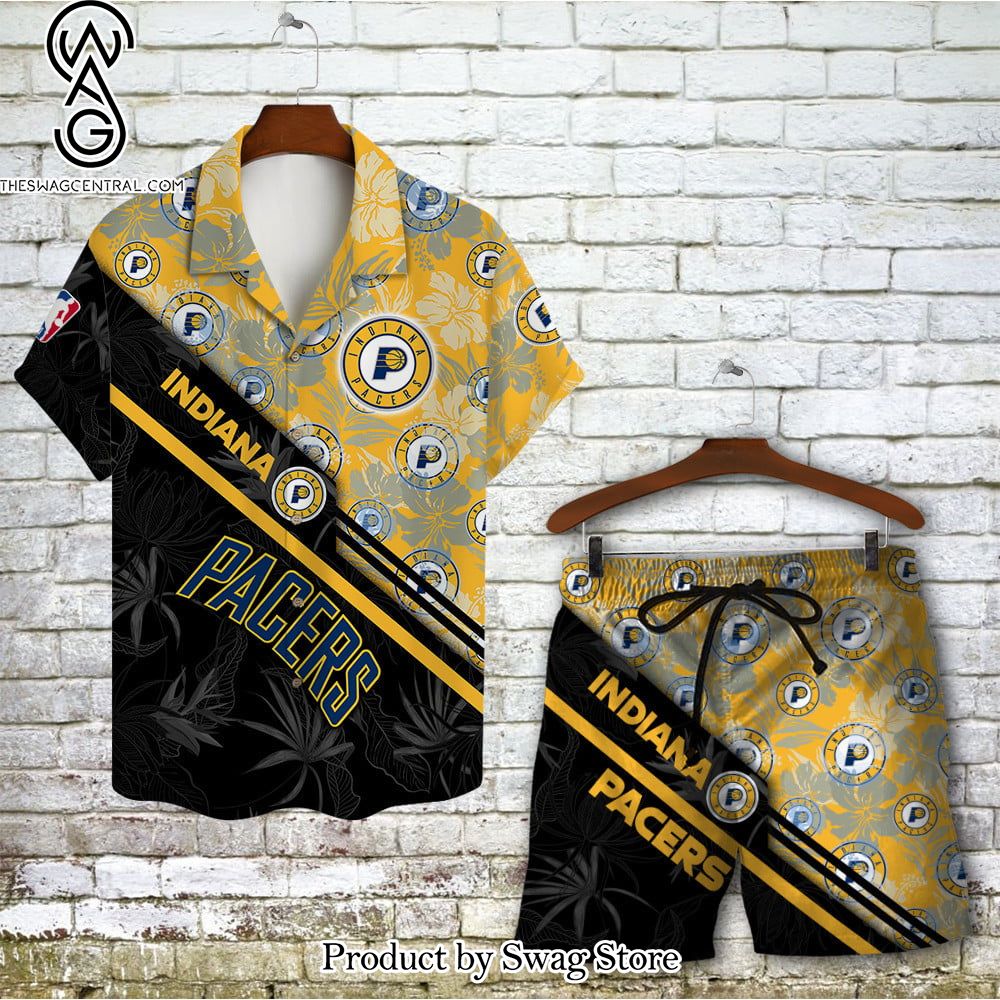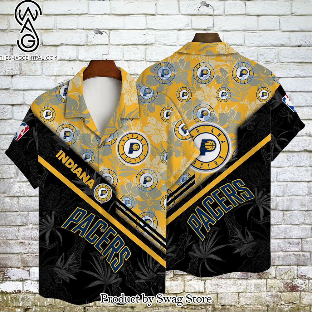 Indiana Pacers Team Logo Pattern Basketball Black Hawaiian Set – Swag Store 2831 description information
