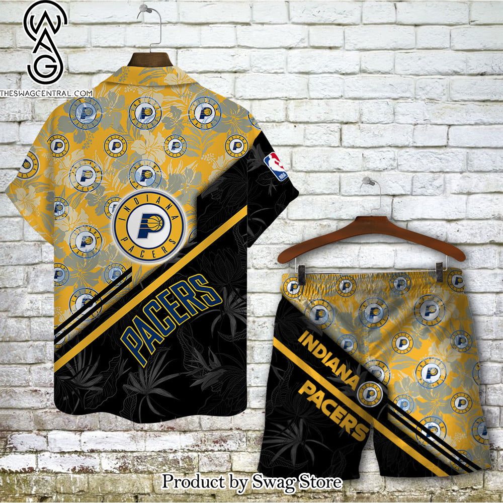 NOTE: Indiana Pacers Team Logo Pattern Basketball Black Hawaiian Set – Swag Store 2831