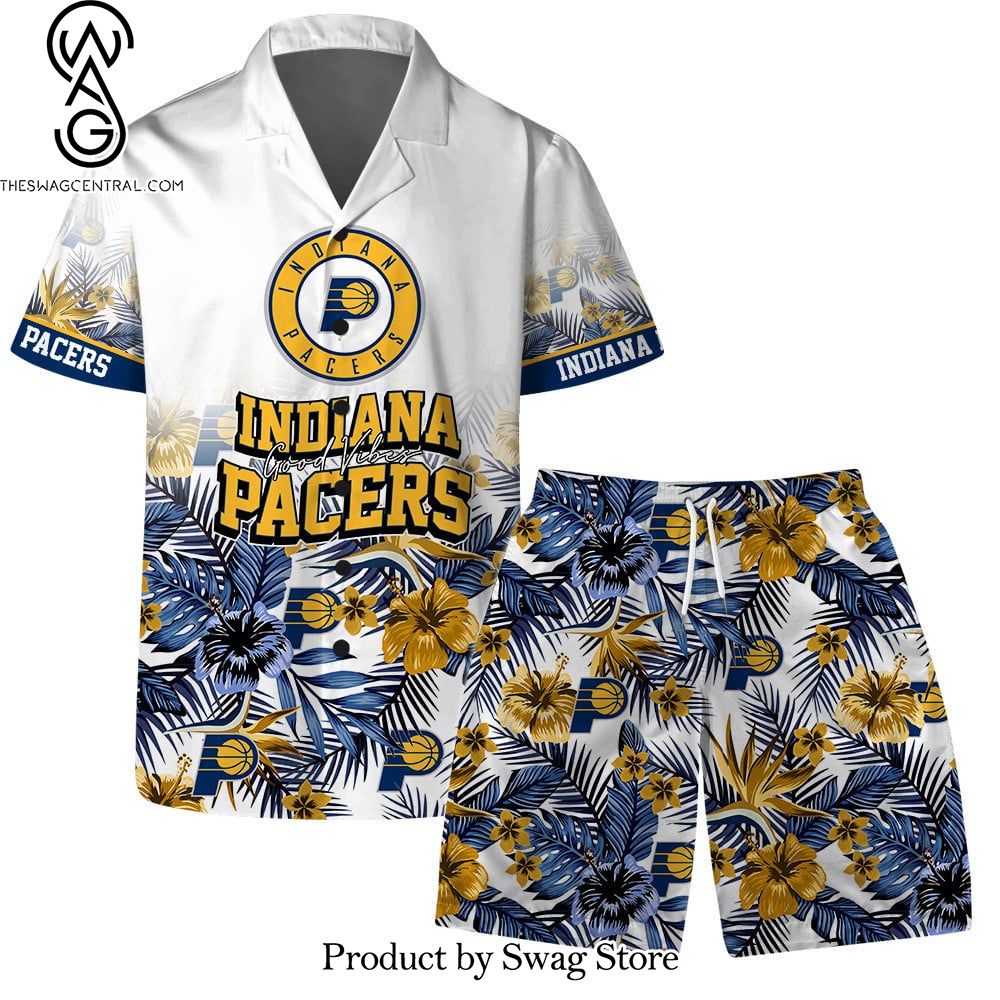 Indiana Pacers Team Logo Pattern Basketball Season Hawaiian Set – Swag Store 3060 description information