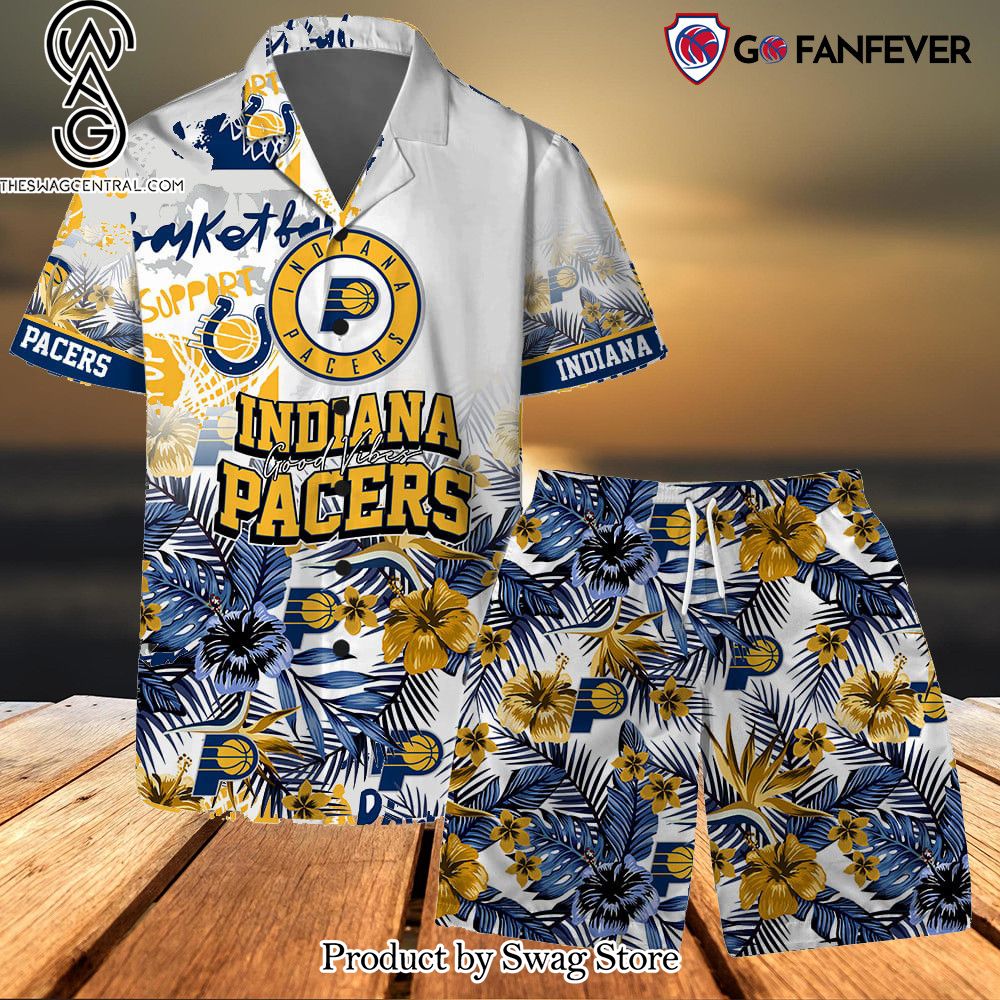 Indiana Pacers Team Logo Pattern Basketball Season Hawaiian Set – Swag Store 3291 description information
