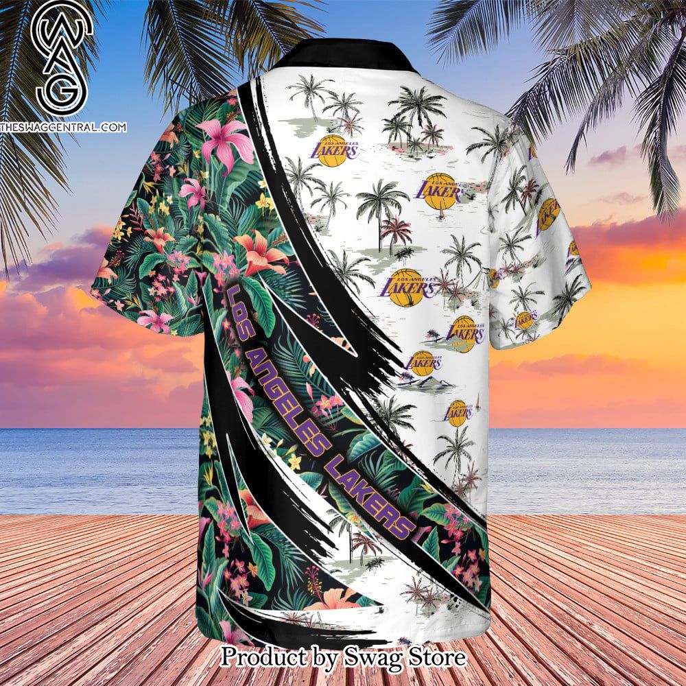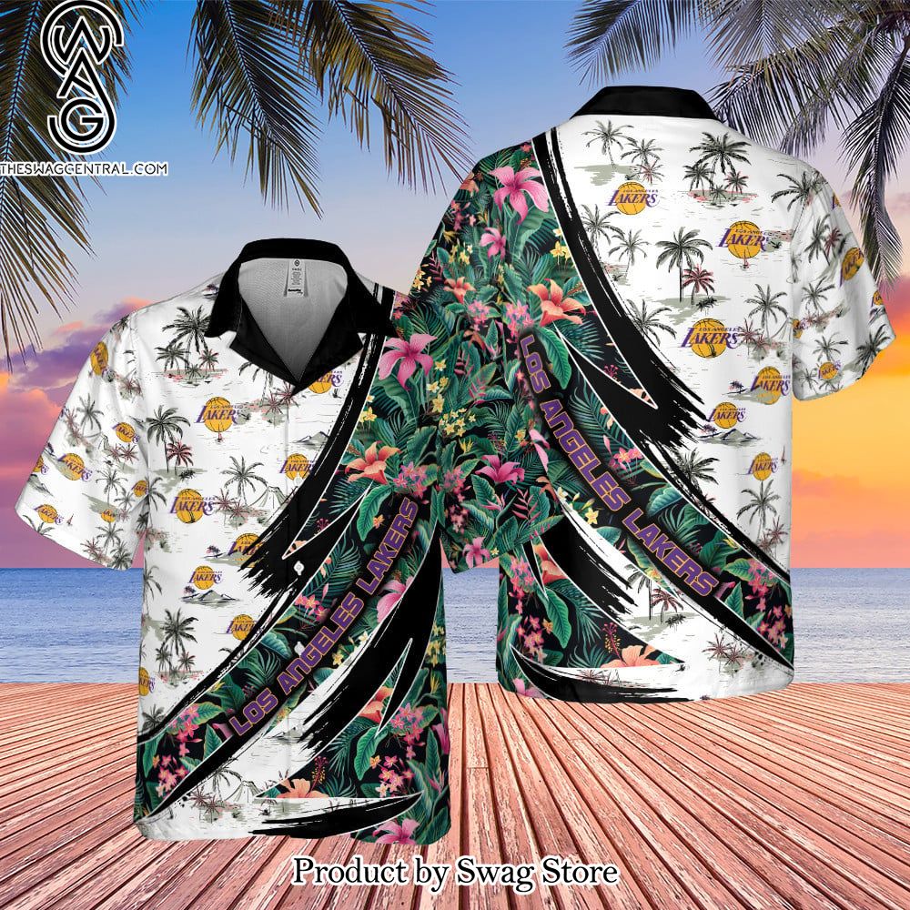 Los Angeles Lakers Hibiscus Flower And Tree Pattern Print Hawaiian Set – Swag Store 2874 description information