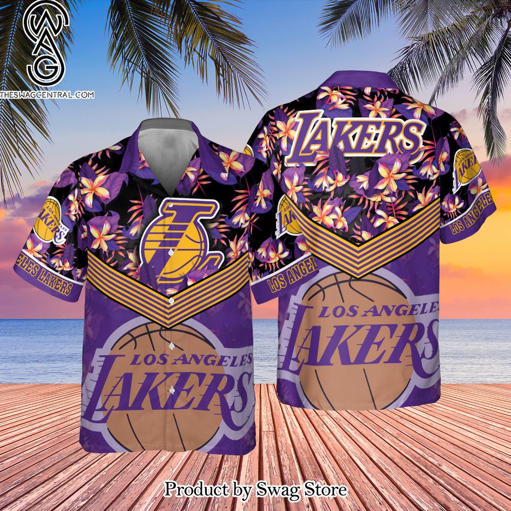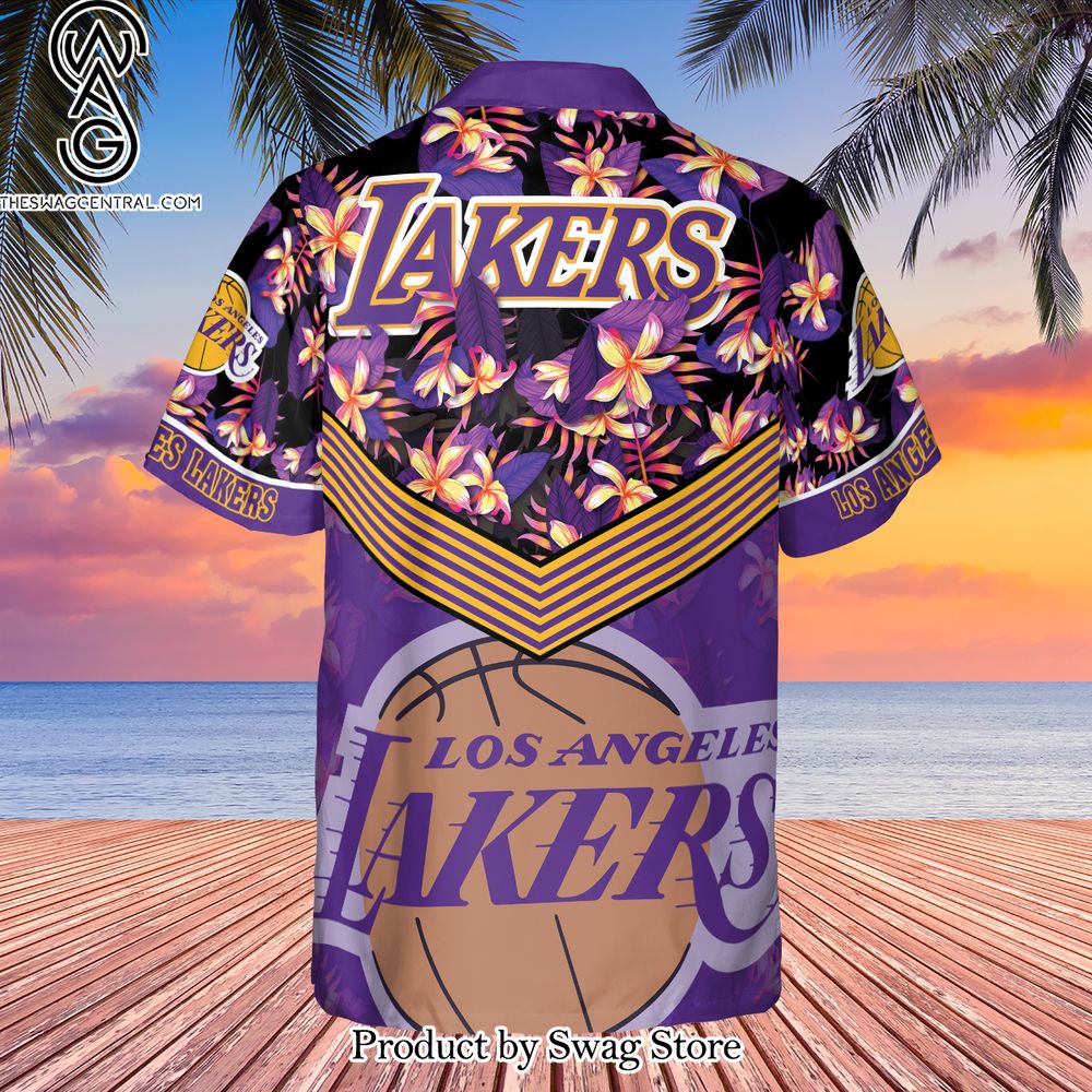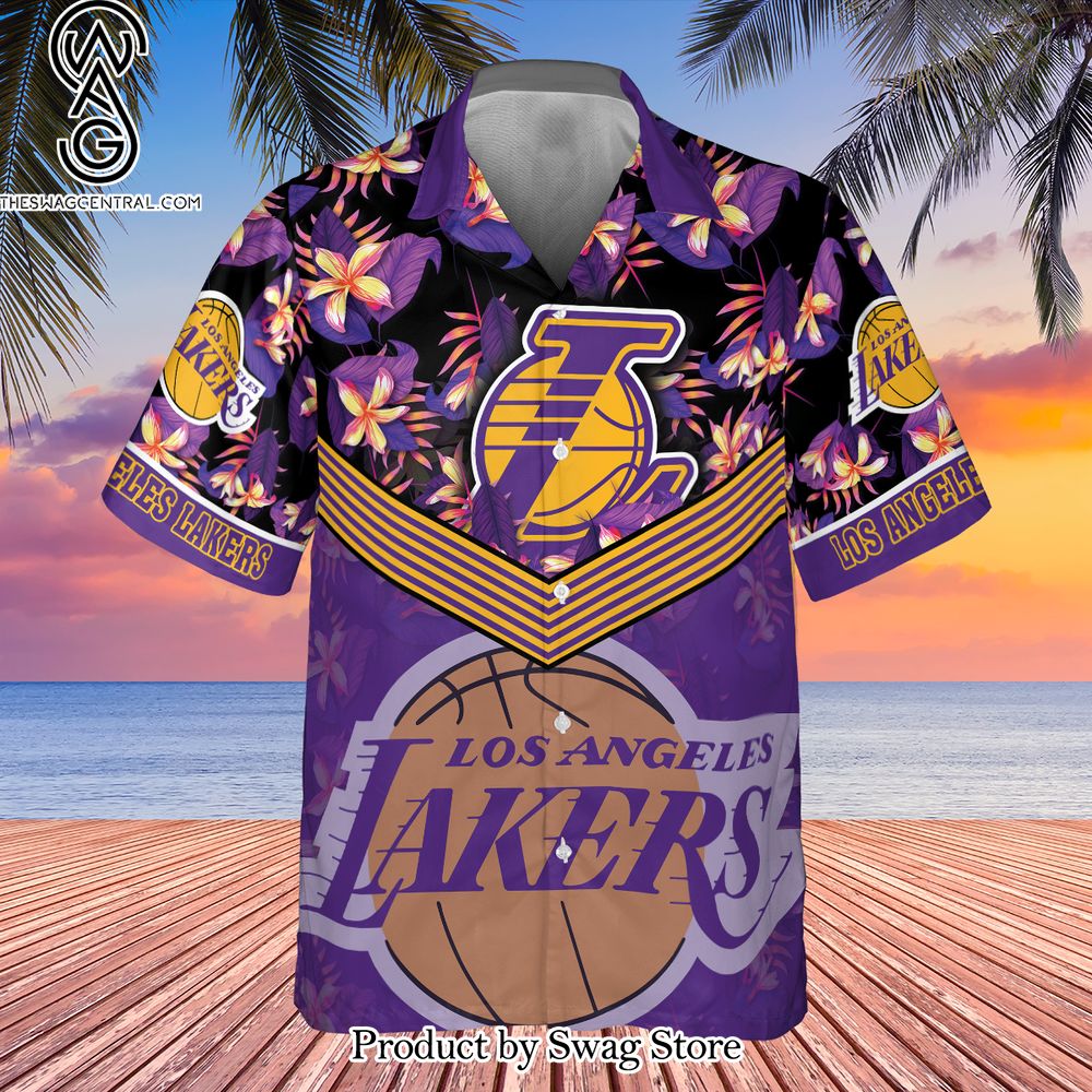 NOTE: Los Angeles Lakers Purple Hibiscus Flower Pattern Print Hawaiian Set – Swag Store 3126