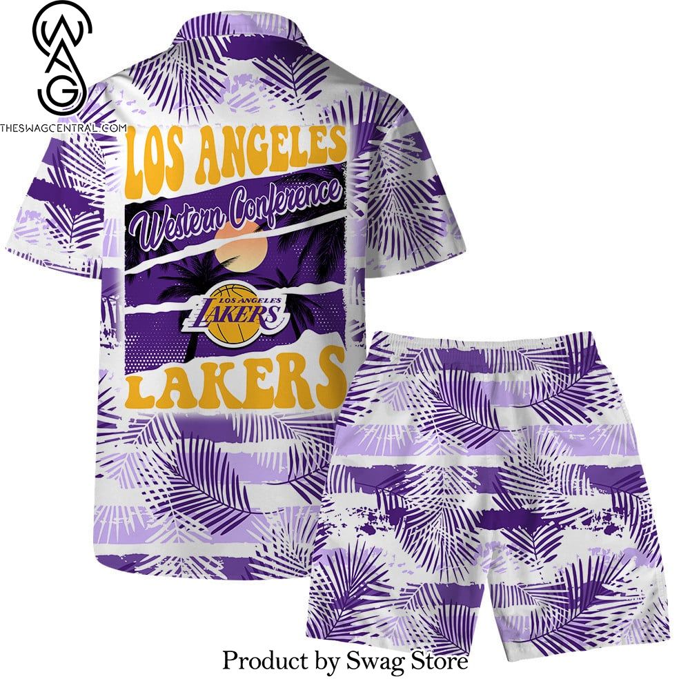 Los Angeles Lakers Team Logo Pattern Leaves Tropical Hawaiian Set – Swag Store 2869 description information