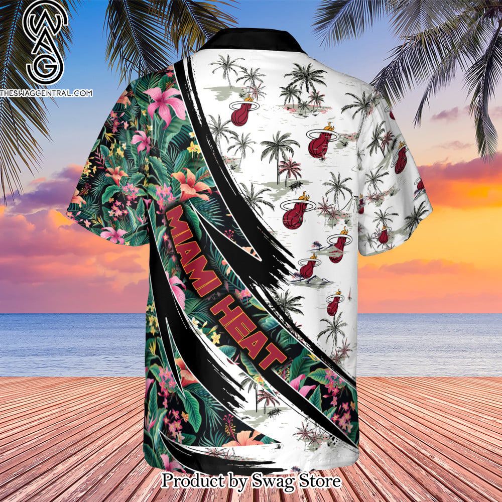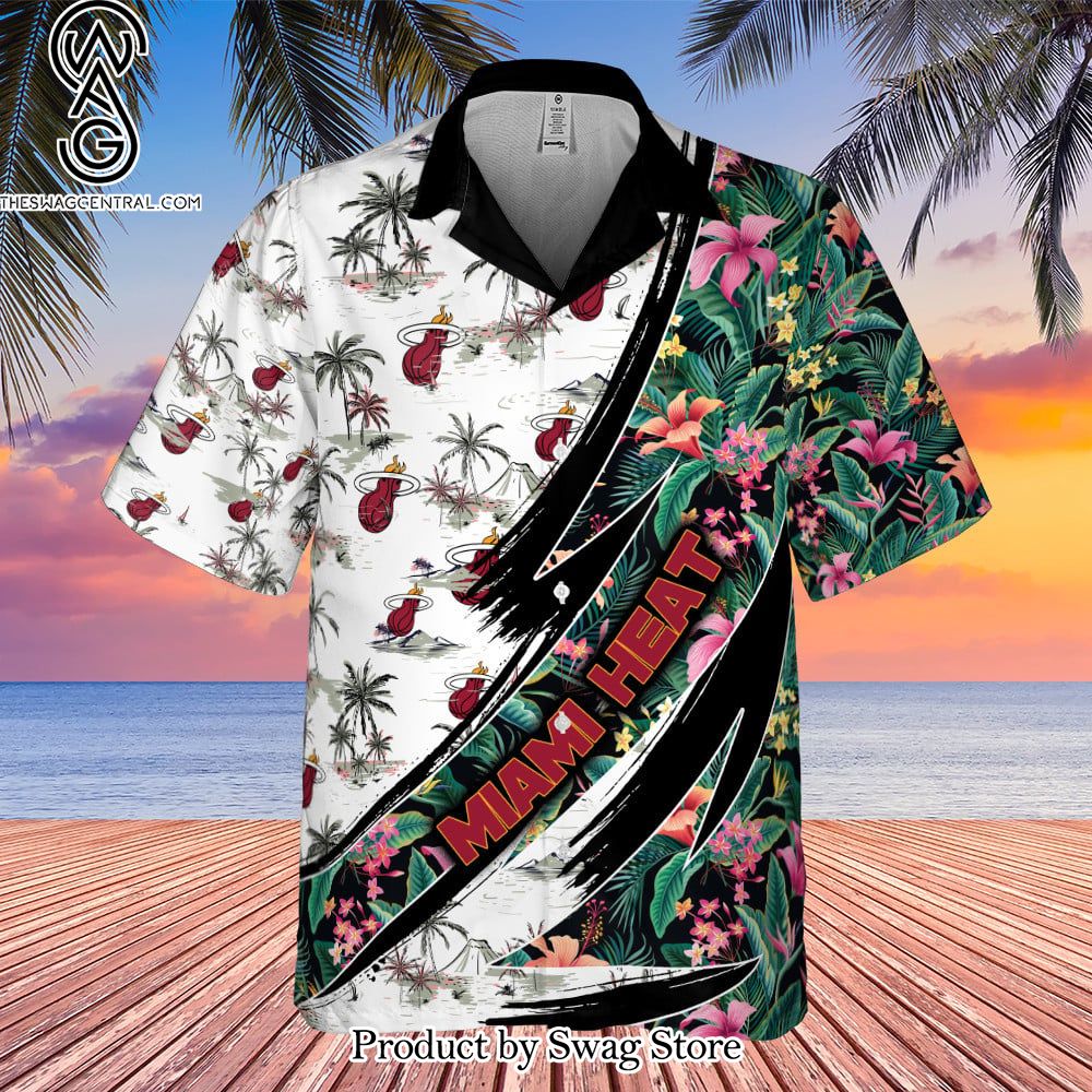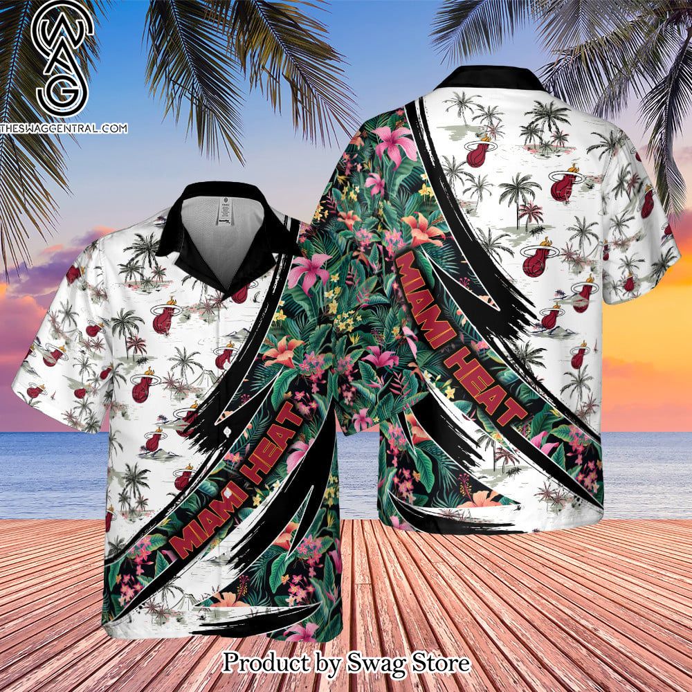 NOTE: Miami Heat Hibiscus Flower And Tree Pattern Print Hawaiian Set – Swag Store 2879