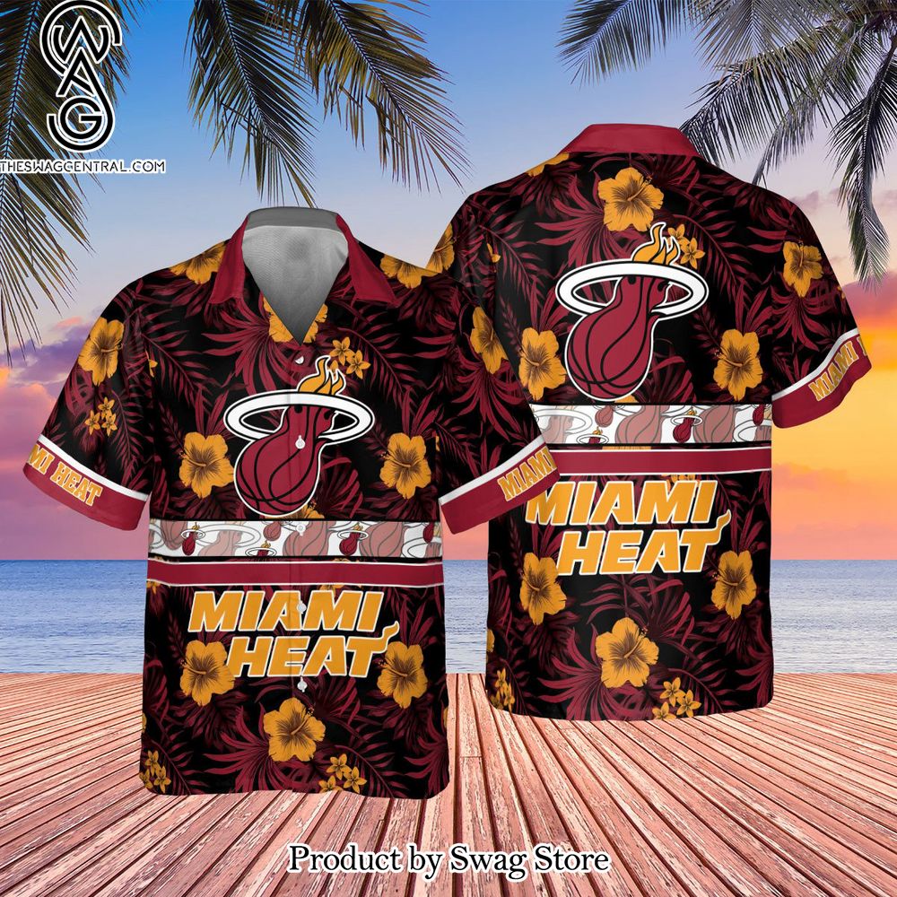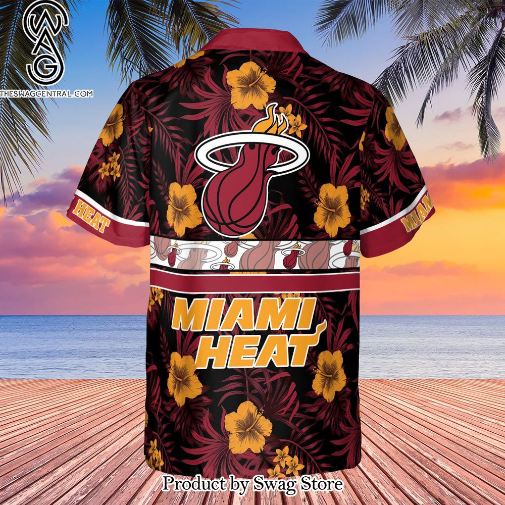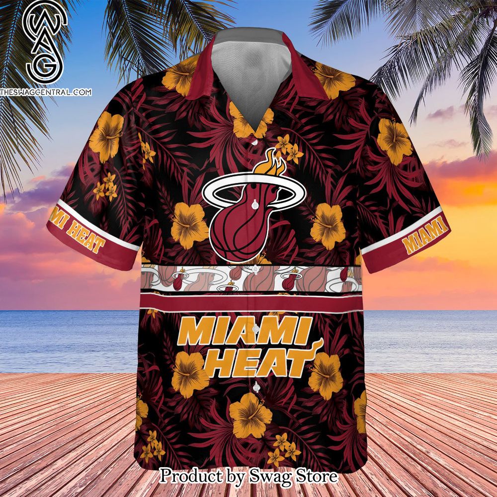 NOTE: Miami Heat National Basketball Association Hibiscus Logo All Over Print Hawaiian Set – Swag Store 2875
