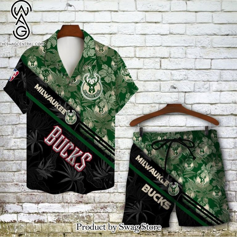 Milwaukee Bucks Team Logo Pattern Basketball Black Hawaiian Set – Swag Store 2868 description information