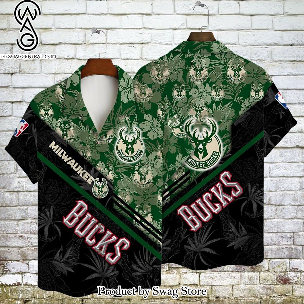 NOTE: Milwaukee Bucks Team Logo Pattern Basketball Black Hawaiian Set – Swag Store 2868