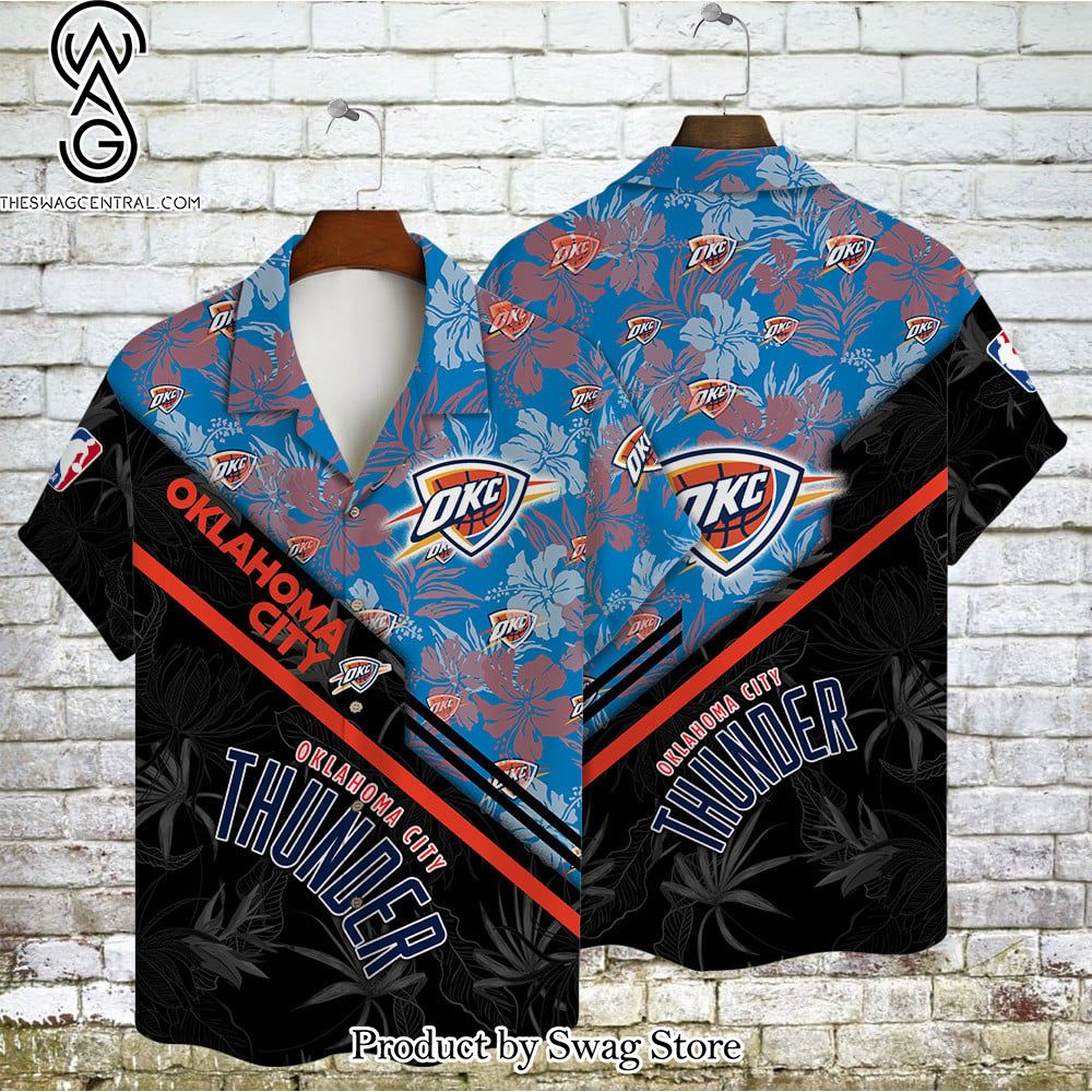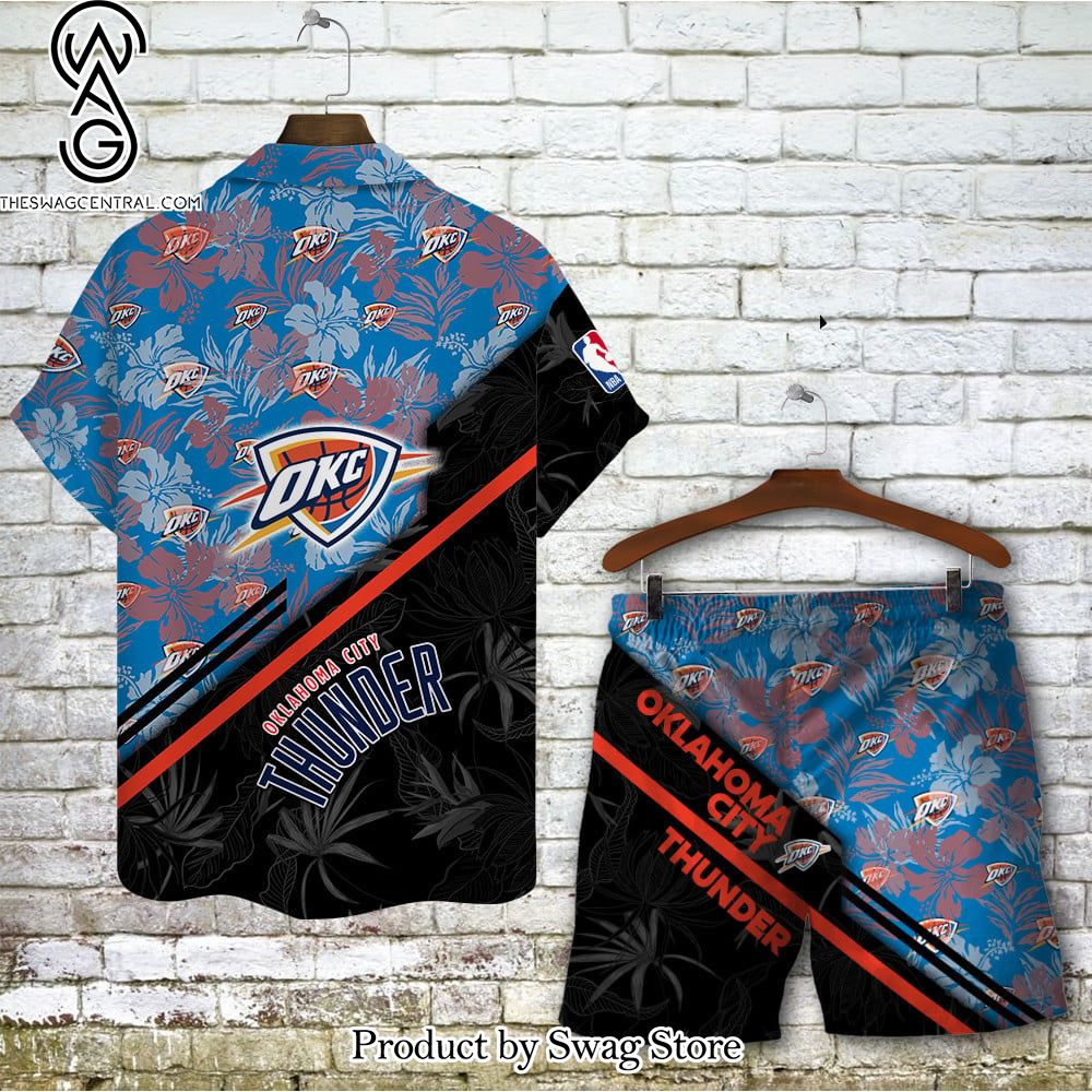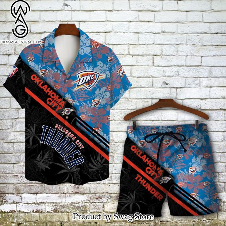 Oklahoma City Thunder Team Logo Pattern Basketball Black Hawaiian Set – Swag Store 3076 description information