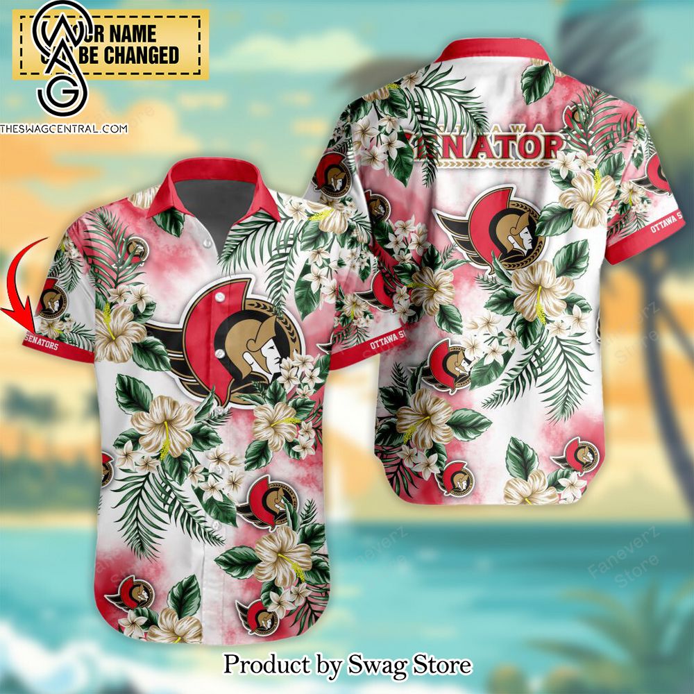NOTE: Ottawa Senators Custom Name Aloha Hawaiian Button Shirt – SWAG 3123