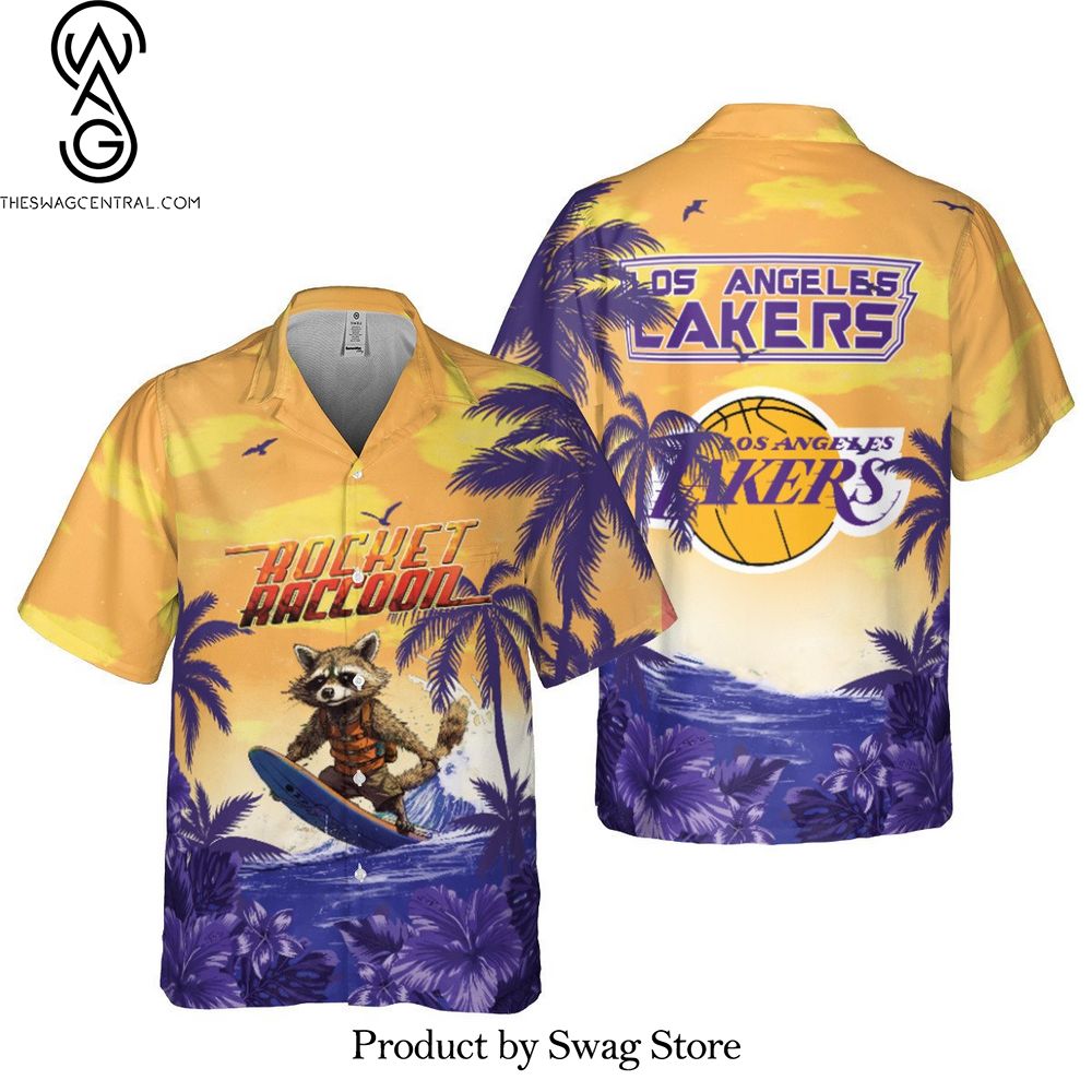 NOTE: Rocket Raccoon And Los Angeles Lakers Summer Pattern Print Hawaiian Set – Swag Store 3166